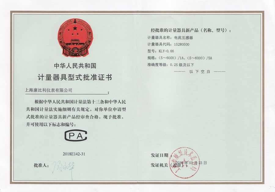 計量器具型式批準證-電流互感器