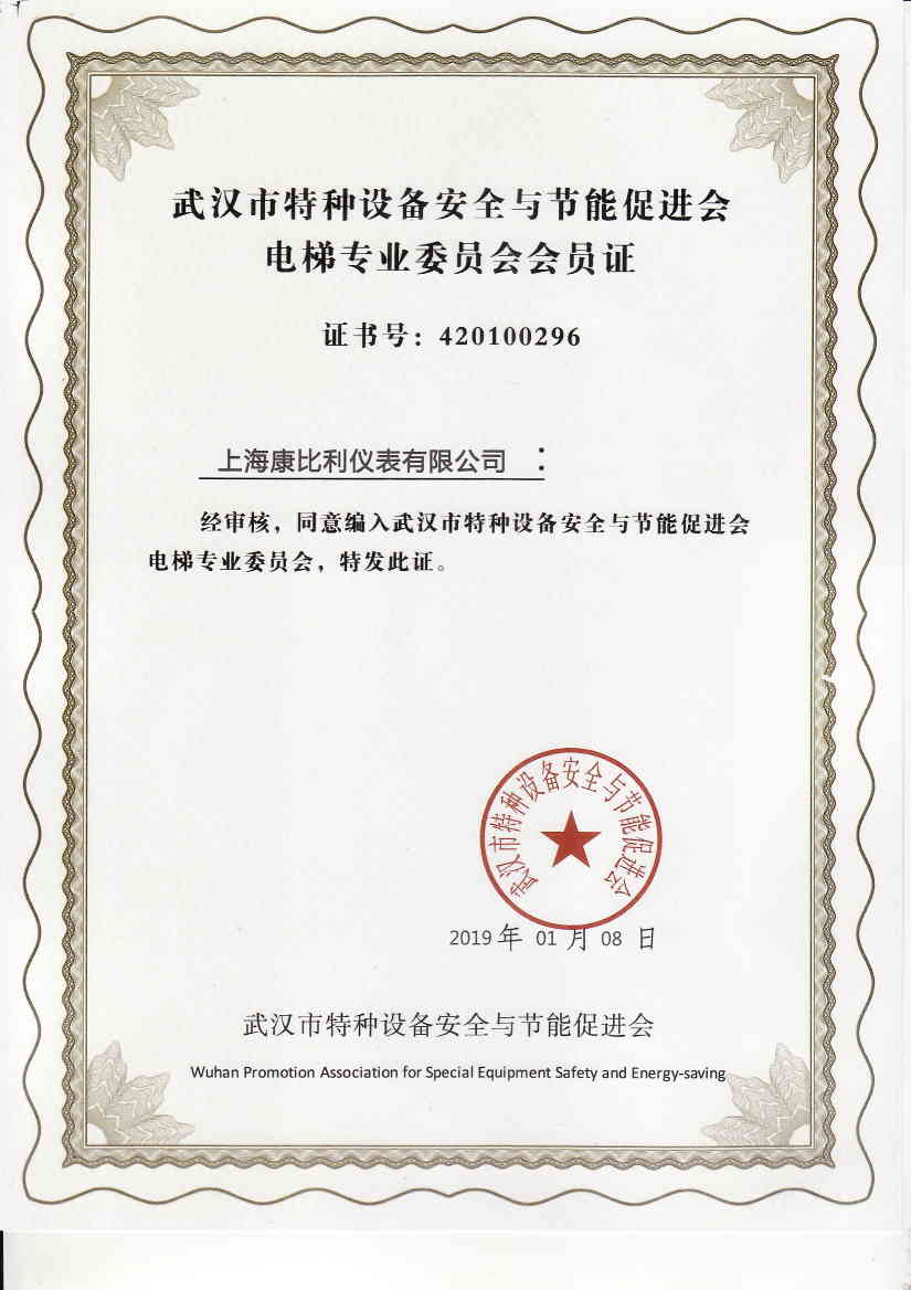武漢市電梯專業委員會會員證